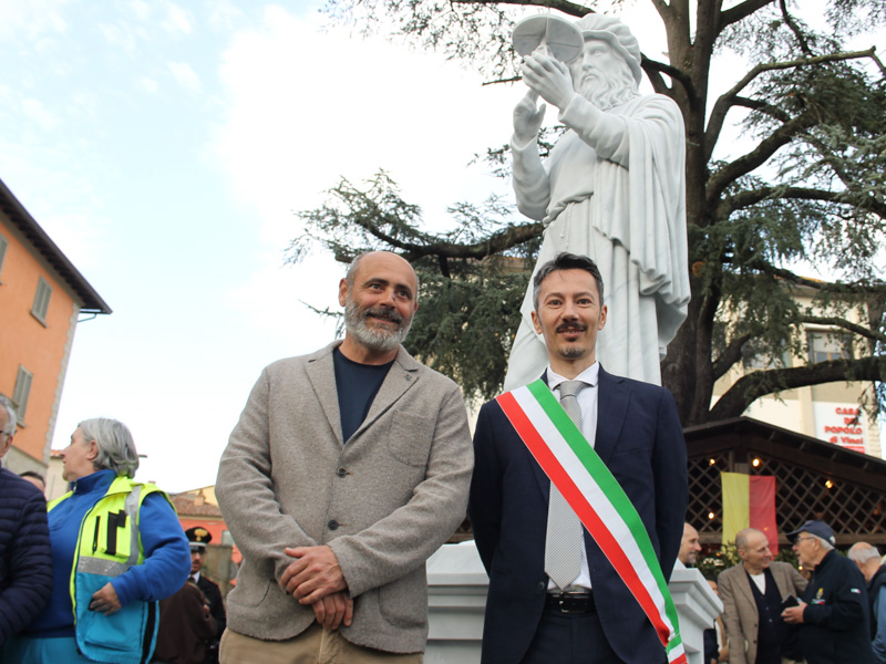 I cittadini hanno riempito via Roma dove è stata posizionata l'opera in marmo di Filippo Tincolini. Sindaco Vanni: "È la realizzazione di un sogno"