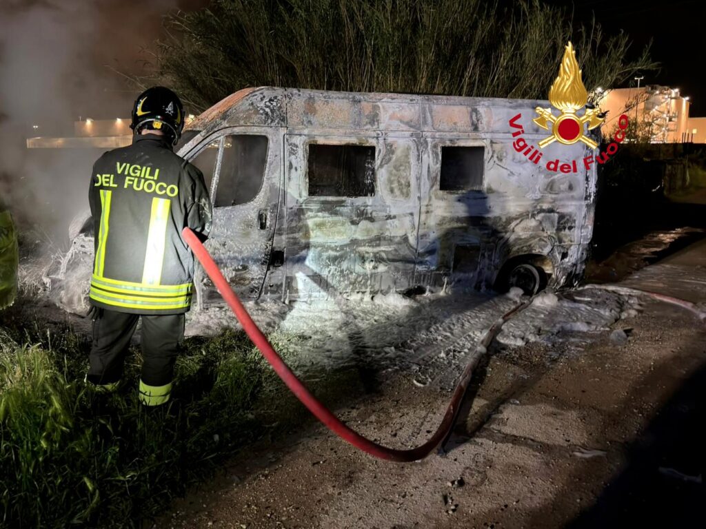 Intervento dei Vigili del fuoco nella notte per un incendio che ha coinvolto un furgone in via del Paradiso.