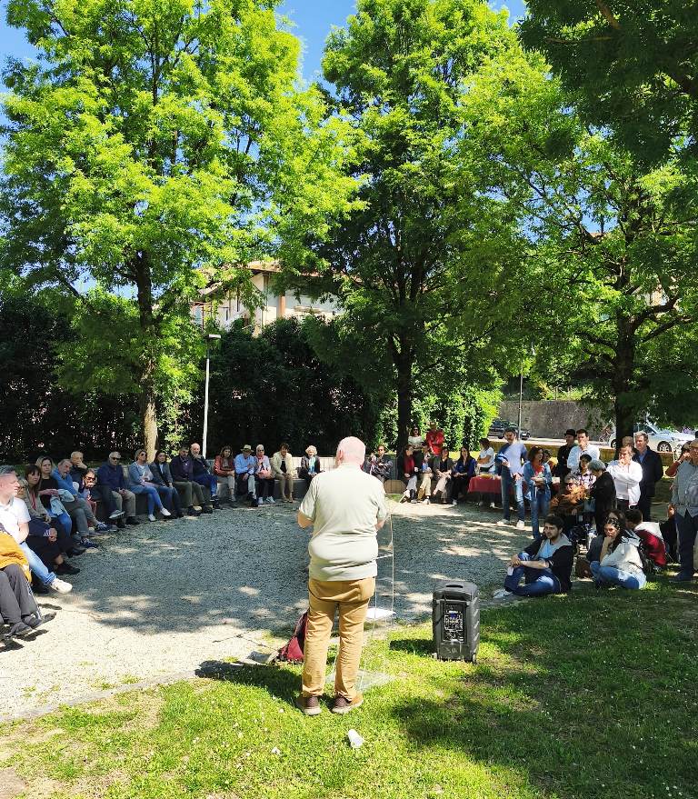Emozione e commozione durante il racconto di Francesco Catastini “Velia, Alindora, Dina e altre Resistenti. Storie di donne", accompagnato da un momento conviviale grazie alla merenda partigiana offerta dalla Pro Loco.