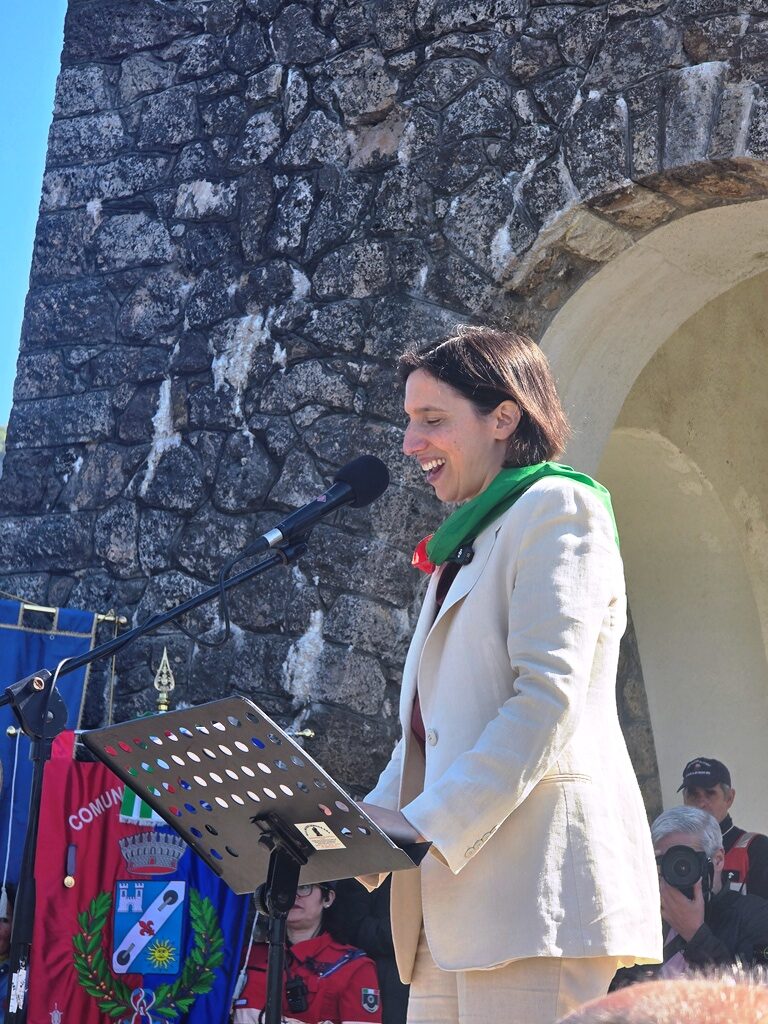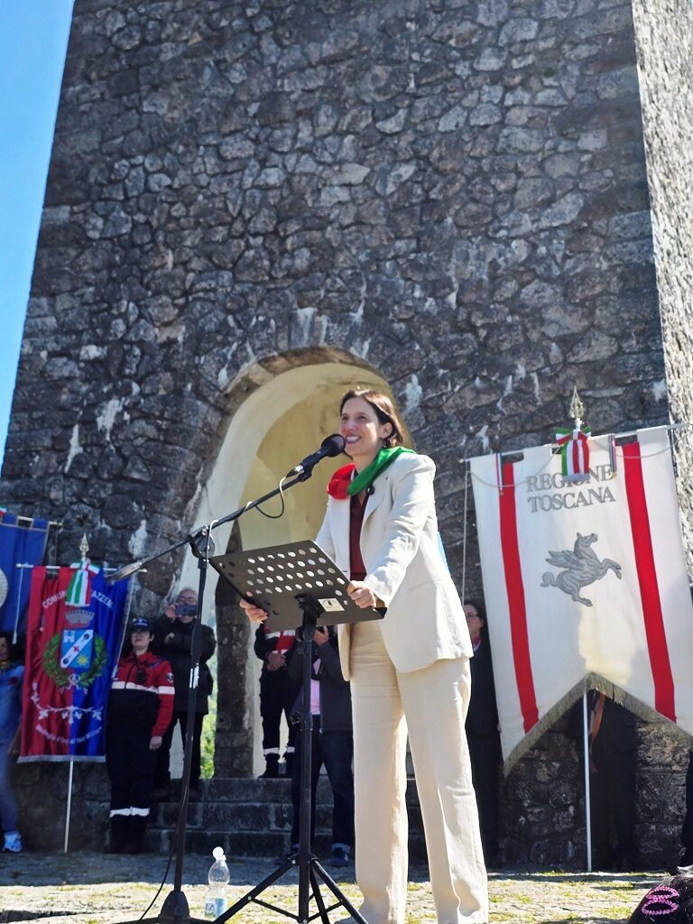 Pubblico delle grandi occasioni quello che è salito a Sant’Anna di Stazzema al Sacrario, a Col di Cava, questa mattina per la celebrazione del 25 aprile. Attesa soprattutto l’orazione ufficiale della segretaria nazionale del Partito Democratico, Elly Schlein, che ha preso parola dopo il saluto del sindaco di Stazzema e presidente del Parco nazionale della Pace di Sant’Anna di Stazzema Maurizio Verona, del presidente dell’Associazione Martiri di Sant’Anna Umberto Mancini e del presidente della Regione Eugenio Giani. Prima di raggiungere il Sacrario, percorrendo la via Crucis, l’onorevole ha incontrato nel Museo della Resistenza di Sant’Anna i superstiti Adele Pardini e Paolo Lencioni, ascoltando le loro storie di sopravvissuti alla furia nazifascista nella strage del 12 agosto 1944.