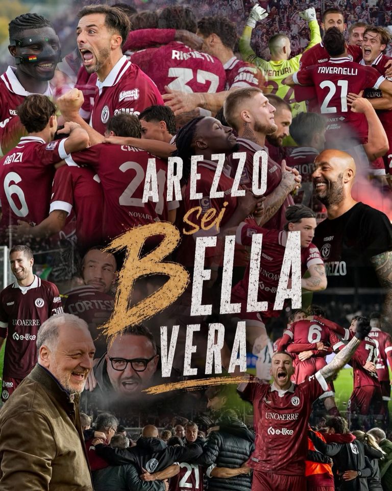 La S.S. Arezzo torna in Serie B dopo 19 anni. La squadra di Cristian Bucchi conquista la promozione al termine di una grande stagione, chiusa con la vittoria di oggi per 3-1 contro la Torres. Decisive le reti di Tavernelli, Arena e Pattarello che hanno messo in cassaforte la salita diretta tra i cadetti.
