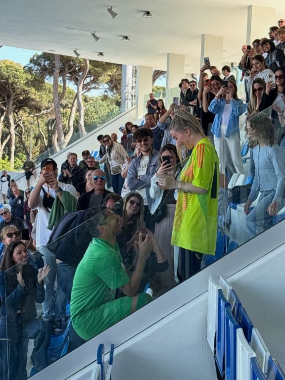 Al fischio finale, infatti, il portiere e capitano del Viareggio Andrea Carpita, 36 anni, proprio nel giorno della sua ultima partita con la maglia bianconera, ha sorpreso tutti chiedendo alla compagna Sharon di sposarlo. Una proposta fatta direttamente ai microfoni dello stadio e accolta da un 'sì' tra gli applausi dei presenti, mentre i compagni di squadra alle sue spalle esponevano uno striscione con la scritta: "Sharon mi vuoi sposare?".