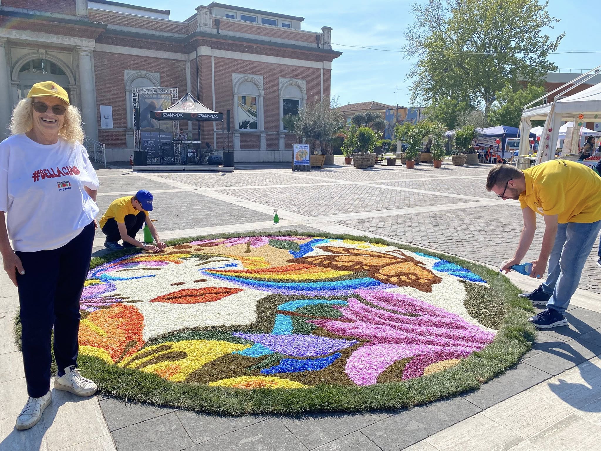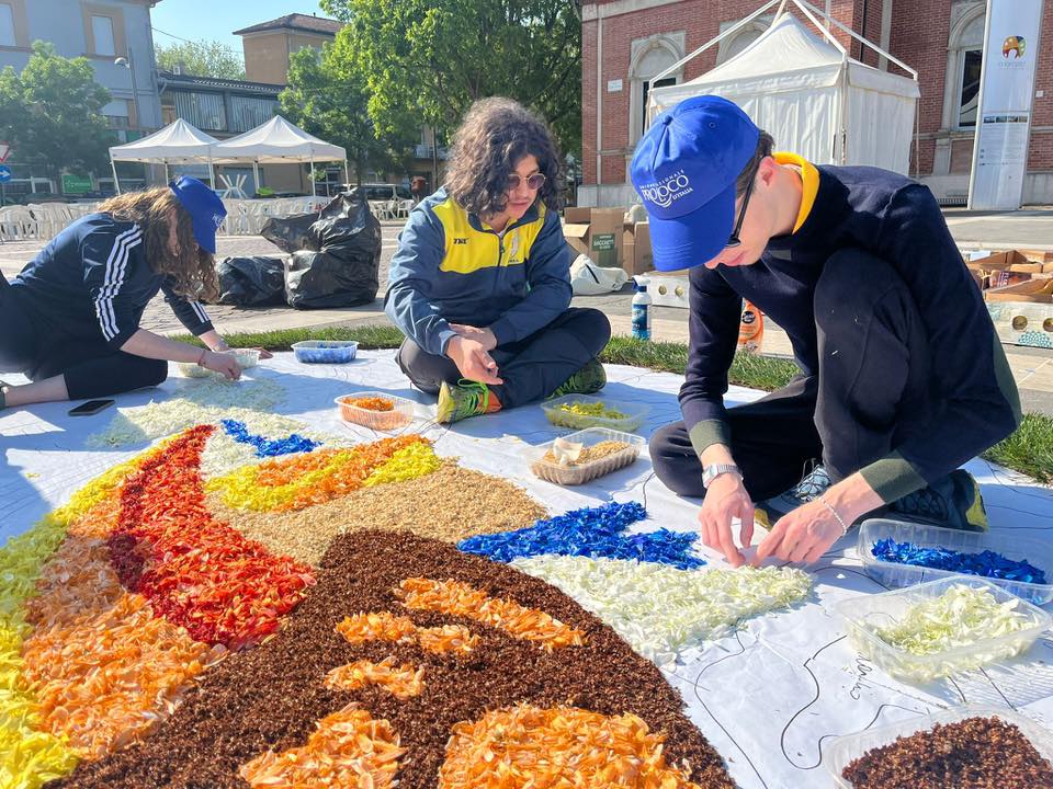 In attesa dell'infiorata del Corpus Domini gli infioratori della Pro Loco impegnati a portare la loro arte in giro per lo Stivale