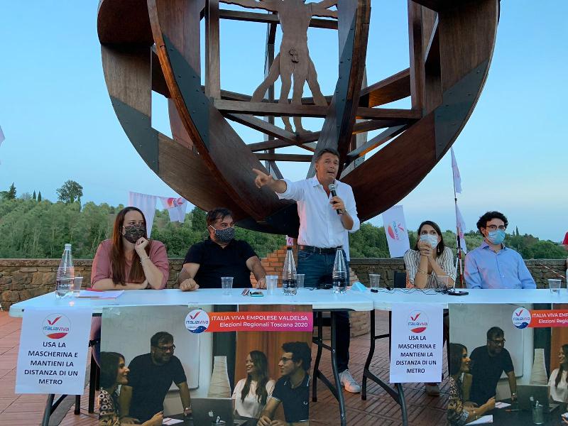 Tutti seduti a un tavolo, di fronte al pubblico accorso nella piazza e con alle spalle le bandiere del partito che sventolavano sopra le colline di Vinci, i candidati hanno presentato loro stessi e ciò che hanno nel mirino per questa campagna elettorale. Renzi, seduto al centro ha preso il microfono dopo le presentazioni, definendo il gruppo Empolese come uno dei “migliori che ci sia”, a sostegno del candidato alla presidenza della Regione Toscana Eugenio Giani.