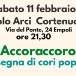 Torna sabato 11 febbraio alle 21,30 al Circolo Arci Cortenuova di Empoli Accoraccoro, la rassegna di cori popolari, giunta alla sua quarta edizione, organizzata da Arci Empolese Valdelsa e Mirincoro. Questa serata rappresenta un momento importante di diffusione della cultura popolare e dell’esperienza artistica e umana dei cori. Intesi non solo come “luoghi” di apprendimento […]