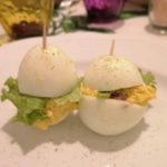 Uova farcite in salsa di tuorli e cavolo cappuccio