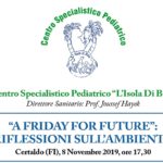“A friday for future”: riflessioni sull’ambiente è il titolo dell’incontro che si terrà venerdì prossimo 8 novembre, alle ore 17.30, nei locali del Centro Polispecialistico Pediatrico “L’isola di Bau” di Certaldo, diretto dal  professore Joussef Hayek. Esperti di varie discipline si confronteranno sui cambiamenti climatici e sul loro possibile impatto sulla salute dei bambini e […]