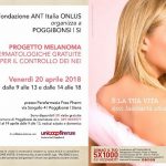 Dopo l’impegno di gennaio, febbraio e marzo nella città di Siena, Fondazione ANT Italia ONLUS porterà per la prima volta il Progetto melanoma anche nel Comune di Poggibonsi. I cittadini residenti nel Comune di Poggibonsi avranno a disposizione 30 visite dermatologiche gratuite per la diagnosi precoce del melanoma. Le visite si terranno presso la Parafarmacia […]