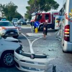 Incidente tra pullman turistico, moto e auto sull'Aurelia, strada chiusa. Tre in ospedale