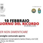 Lunedì 10 febbraio si terrà un Consiglio comunale aperto a San Miniato per la Giornata del Ricordo. Alle 9.30 alla Fondazione Santa Chiara interverranno il sindaco Simone Giglioli, il presidente del Consiglio comunale Vittorio Gasparri, il vescovo Andrea Migliavacca, il consigliere Michele Fiaschi e Guido Giacometti dell’associazione Venezia Giulia e Dalmazia. Saranno proiettati alcuni filmati […]