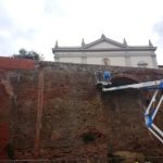 Lavori in altezza a Cigoli, muro in sicurezza in piazza Cardi