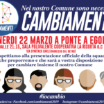 Il Comitato CambiaMenti presenterà pubblicamente il candidato alla cultura e tutti i candidati della squadra di governo. Lo farà a Ponte a Egola, nella serata di Venerdì 22 Marzo presso la Sala Polivalente della Cooperativa La Risorta G.C. (in via Spartaco Carli) alle ore 21:15: “Vi aspettiamo alla presentazione ufficiale della squadra che proporremo e sarà a vostra disposizione per cambiare insieme il […]