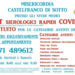 Ppresso gli studi medici della Misericordia di Castelfranco di Sotto è attivo il centro prelievi che, oltre alla normale attività, in questo particolare momento ha avviato il servizio di screening sierologico per il Covid-19, in forma gratuita per le categorie indicate dall’Ordinanza del Presidente di Regione Toscana n.39 del 19 aprile 2020.